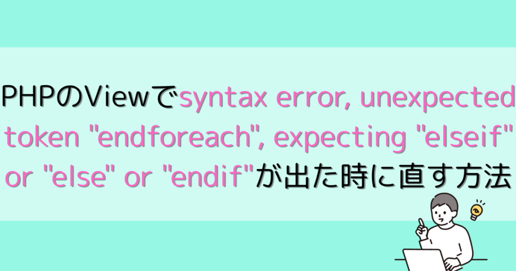 PHPのViewでsyntax error, unexpected token “endforeach”, expecting “elseif” or “else” or “endif”が出た時に直す方法